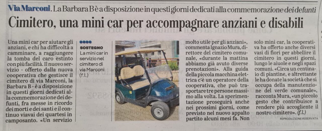 A Selargius per anziani e disabili trasporto gratuito all’interno del cimitero